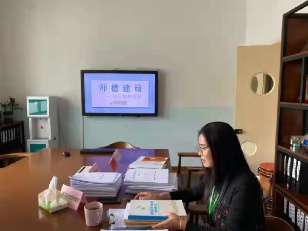 首先,园长王玉莲汇报了新贝艺术幼儿园师德师风建设工作的自查情况。紧接着,何督学根据师德专项督导的相关观测点,围绕师德建设机制、计划方案总结、党员先锋模范、师德行为规范、师德档案记录、“双减”管理落实六大指标,对我园开展师德建设工作的过程性资料进行了查阅。